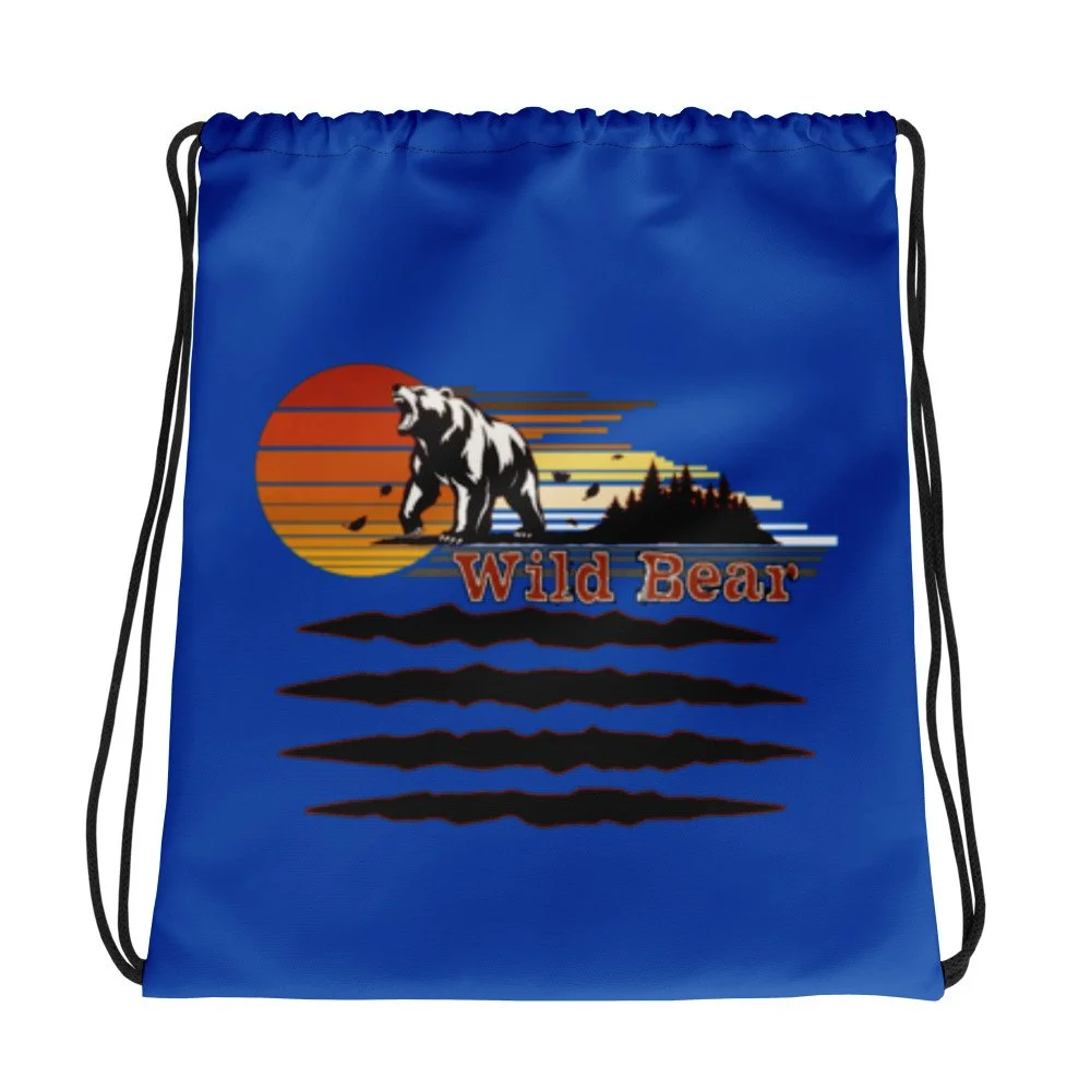 Wild Bear in blue Drawstring bag